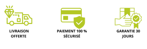 Livraison rapide et offerte :Toutes les commandes sont préparées sous 24h. La livraison est suivie, gratuite, et assurée partout en France sous 5 à 10 jours ouvrés.